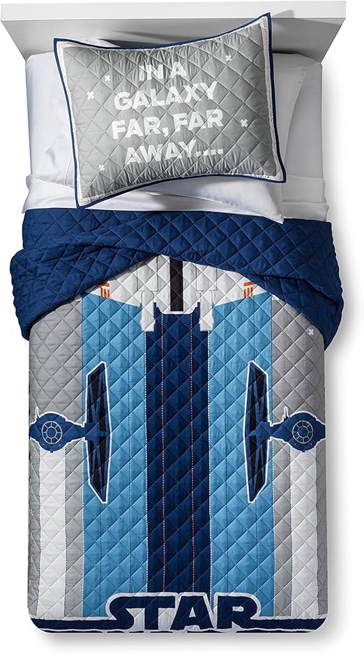 Amazon Com Franco Star Wars Gray Blue Twin Quilt Set Home