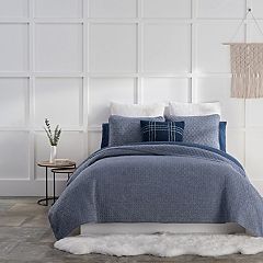 Eddie Bauer Blue Creek 3 Piece Navy Plaid Cotton King Quilt Set