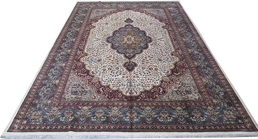 Amazon Com Floral Ivory Blue Kashmir Rugs Handmade Rug 9 X 12 Silk Indian Carpet Kitchen Dining