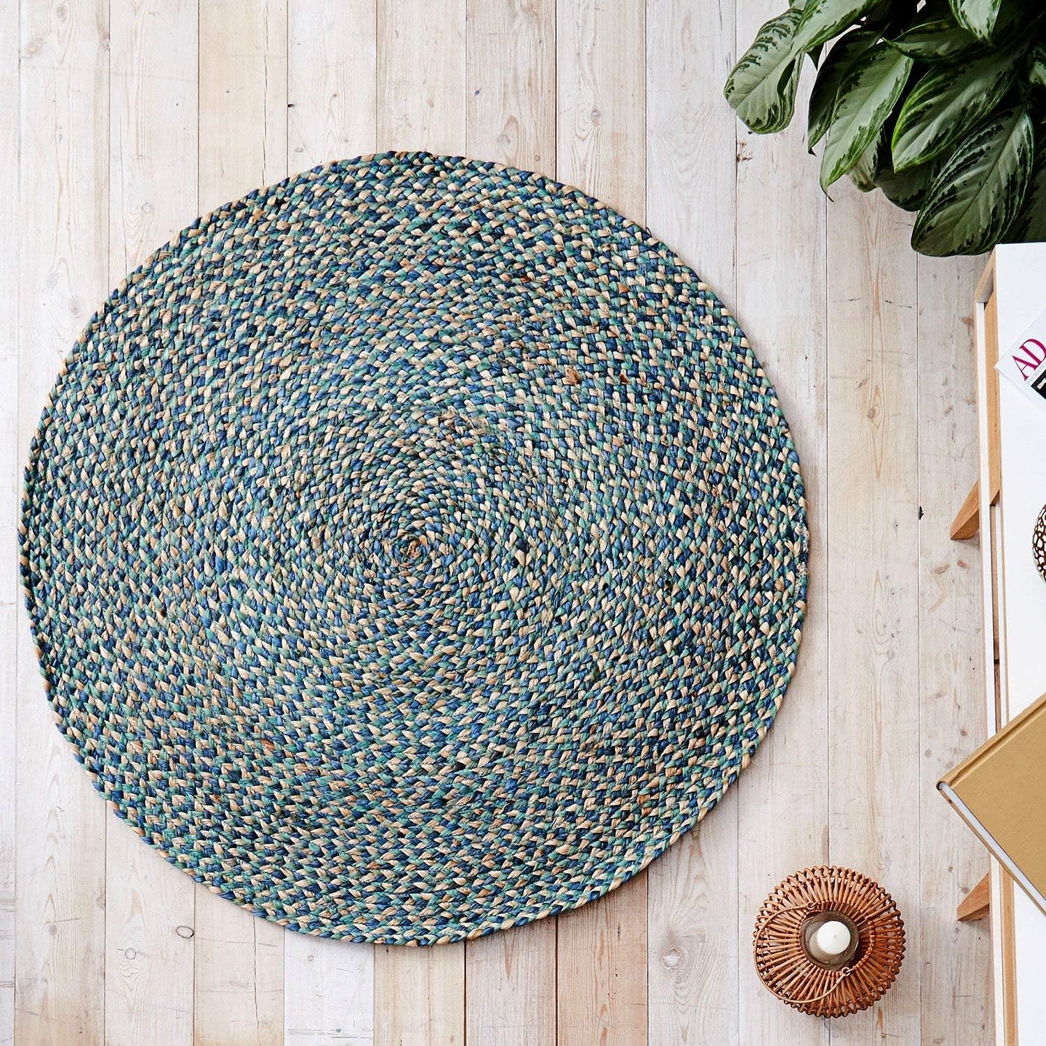 Indian Braided Jute Rug Rag Blue Color Floor Decor Rugs Hand Etsy