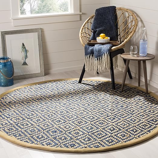 Safavieh Hand Woven Natural Fiber Blue Multi Jute Rug 3 X 3 Round
