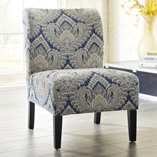 Accent Seating Armless Accent Chair In Navy White Ikat Fabric