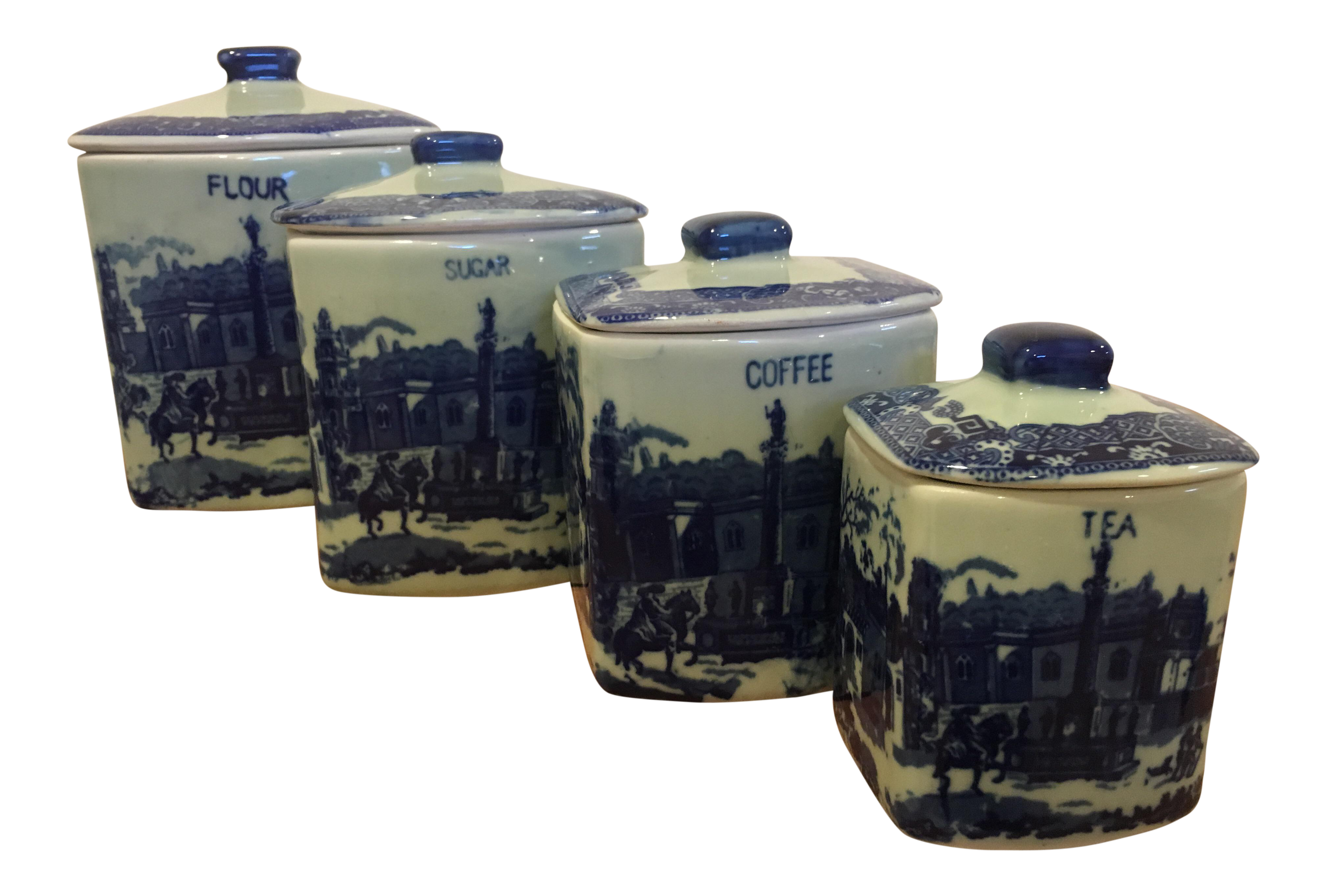 Blue Vintage Reproduction Ironstone Kitchen Canisters Set Of 4