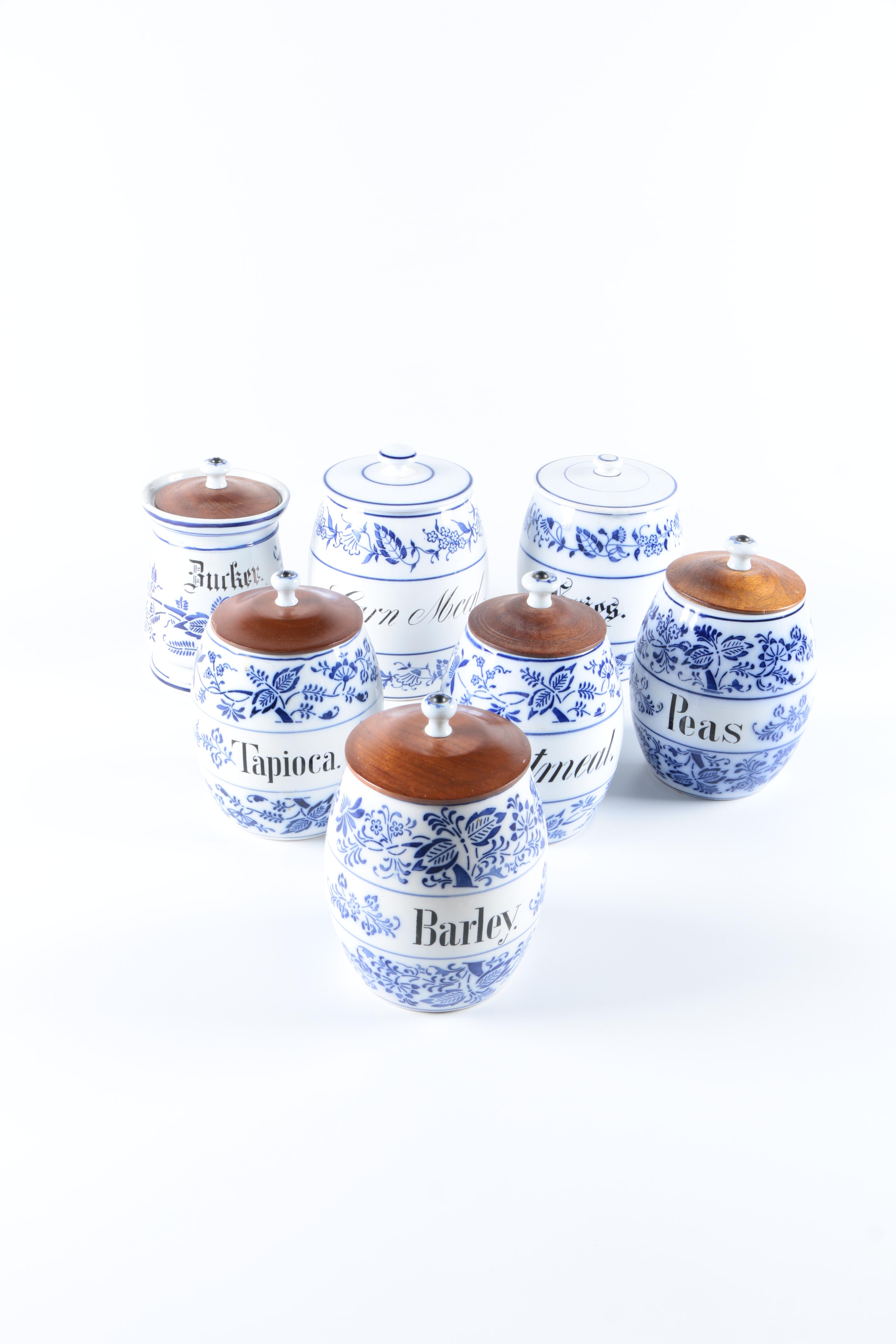 Lot Art German Blue Onion Kitchen Canisters Including Antique