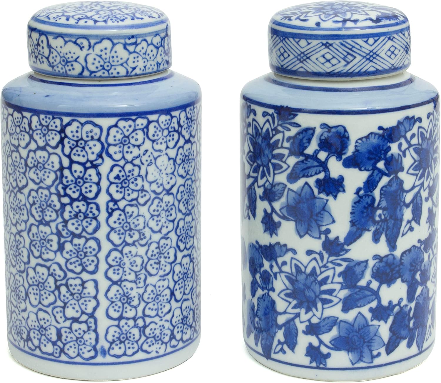 Amazon Com Blue And White Tea Canisters Set Of 2 Kitchen Dining