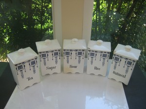 Blue And White Stoneware Kitchen Canisters