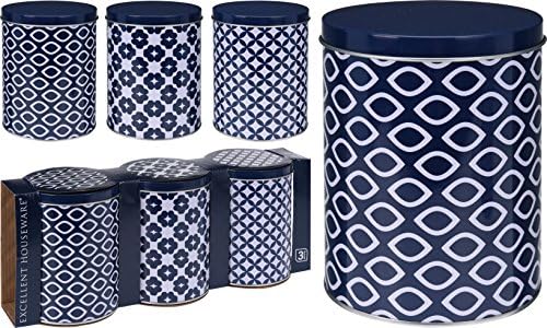 Nautical Design Set Of 3 Tea Coffee Sugar Navy Blue White Food Storage Canister Amazon Co Uk Kitchen Home