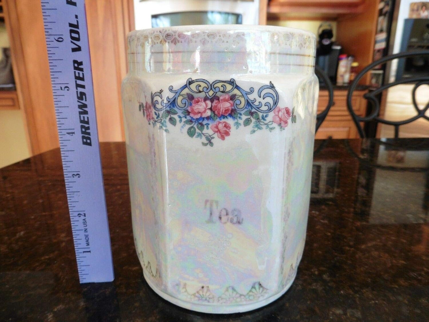 Amazon Com Antique White Block Germany Tea Canister Jar Lusterware Opalescent Porcelain Everything Else