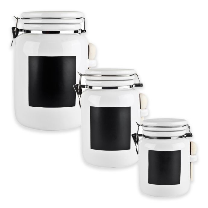 Blue Harbor Ceramic Canister With Chalkboard Panel In White Bed