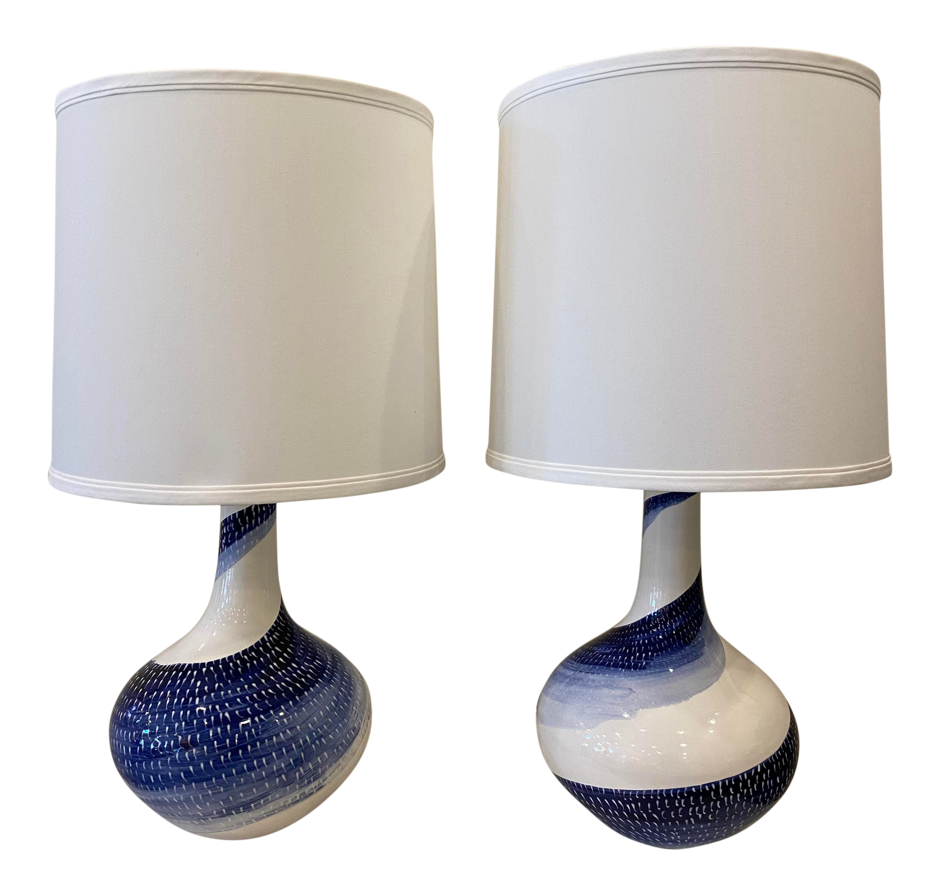 Blue And White Porcelain Lamps Pleated Shades A Pair Chairish