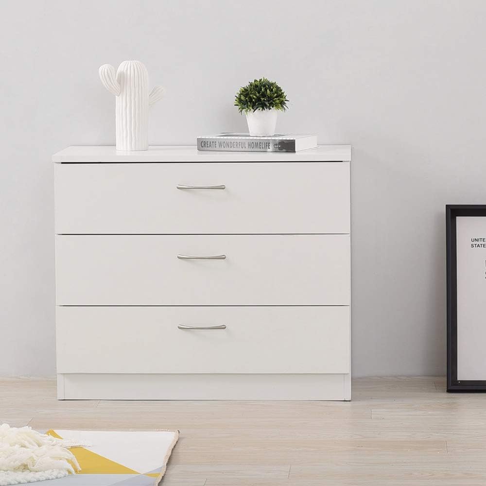 Blue Horizon White Chest Of Drawers Wooden 3 Drawer Nightstand