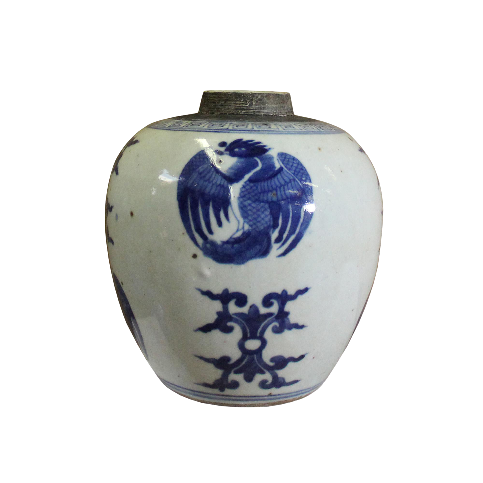 Chinese Oriental Small Blue White Porcelain Ginger Jar Hcs2078 Asian Decorative Jars And Urns By Golden Lotus