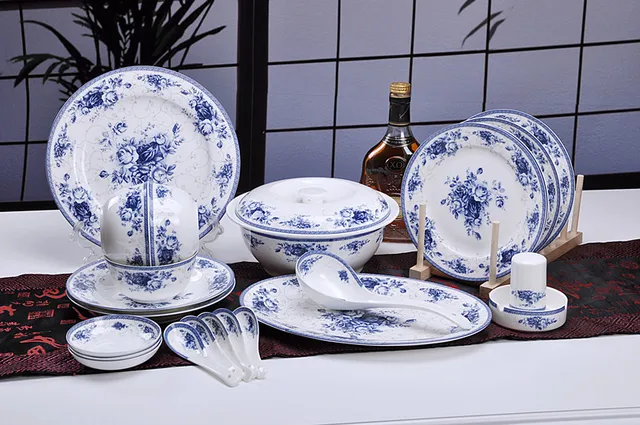 Set China Blue And White Tableware Ceramic Flower Quality Silver