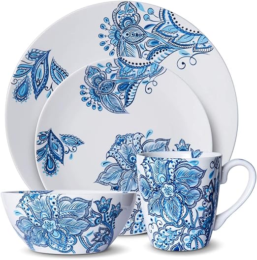 Amazon Com Euro Ceramica Blue Garden 16 Piece Oven Safe Hand