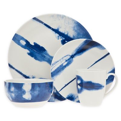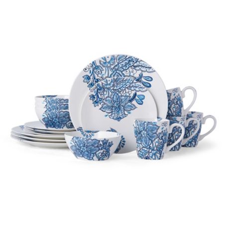 Over And Back Burst 16 Piece Dinnerware Set In Blue White Bed