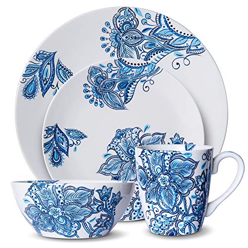 222 Fifth Adelaide 16 Piece Blue And White Dinnerware Set