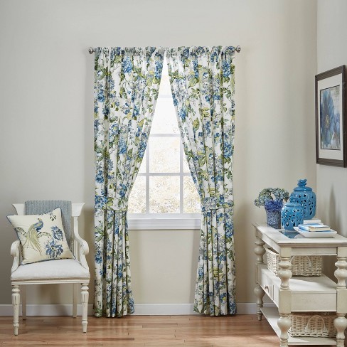 Laura Ashley Home Blue White Floral Peacock Belvedere Curtain