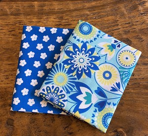 2 Fat Quarters Blue Yellow White Green Floral Prints Cotton