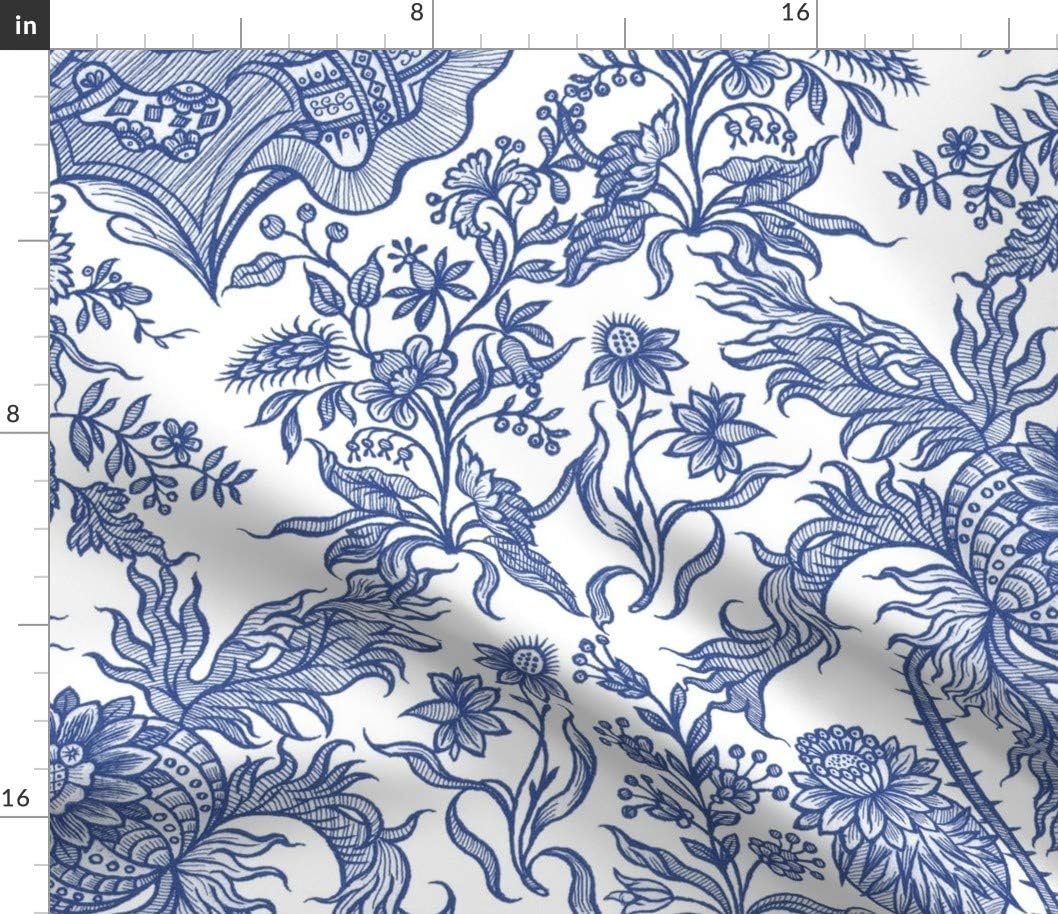 Amazon Com Spoonflower Fabric Toile Blue White Delft Damask