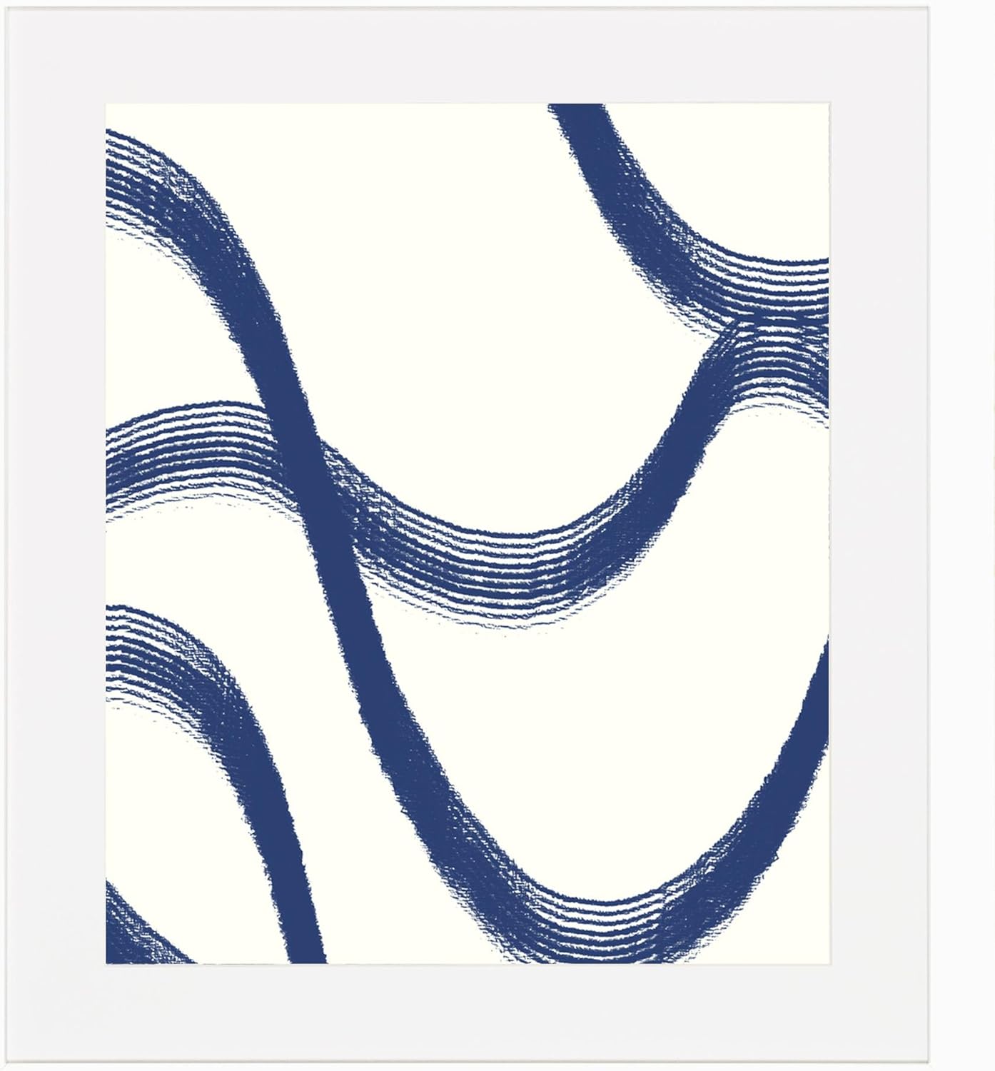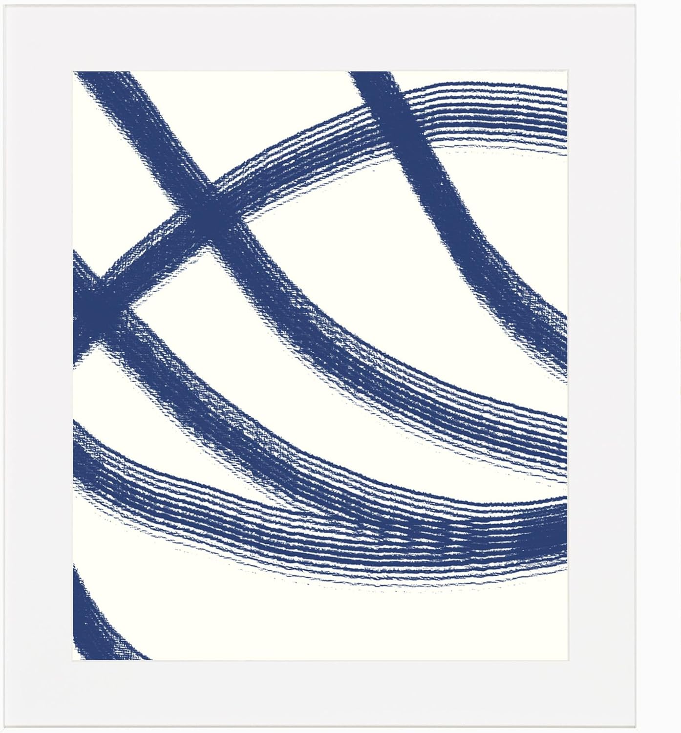 Framed Wall Art Original Abstract Navy Blue White Print Painting