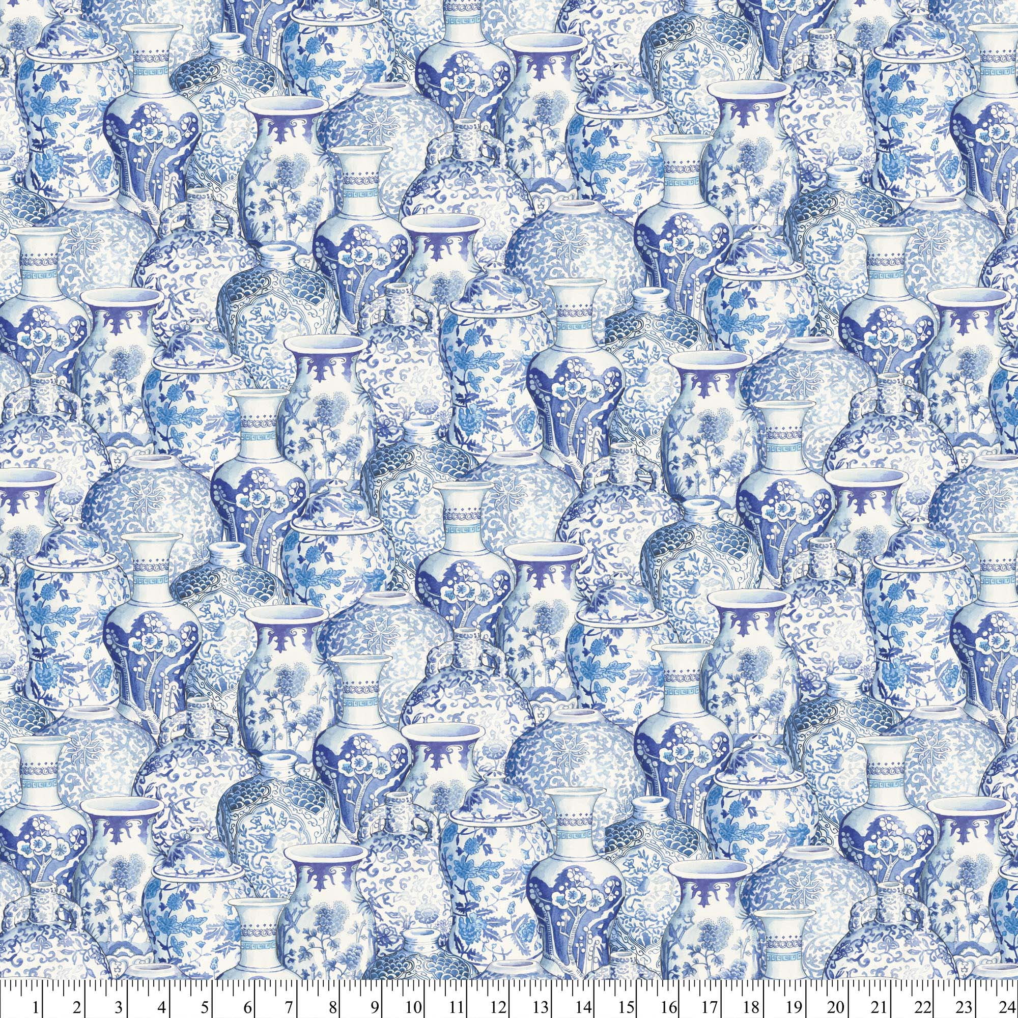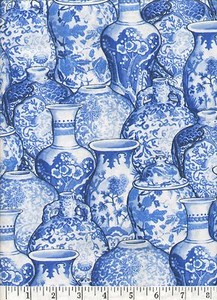 Asian Fabric By The Yard Packed Blue White Ginger Jars Vases