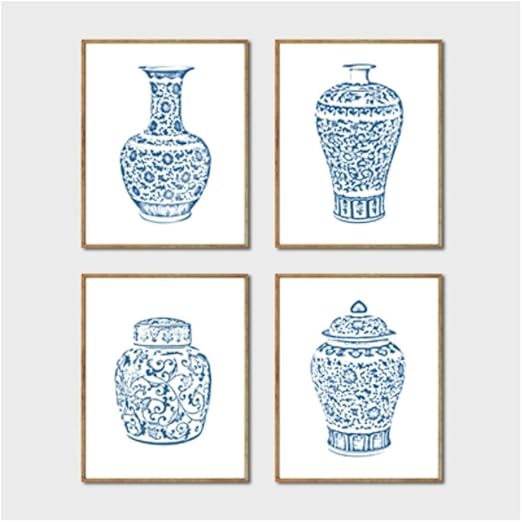 Amazon Com Set Of 4 Blue White Ginger Jar Fine Art 8 X 10