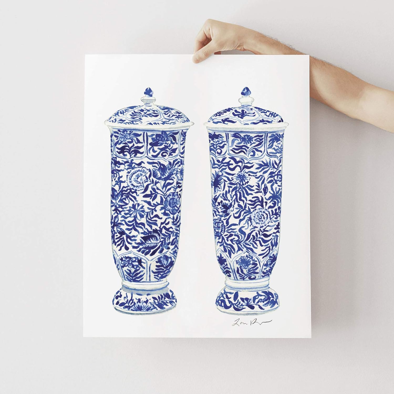 Blue White Ginger Jar Watercolor Art Print