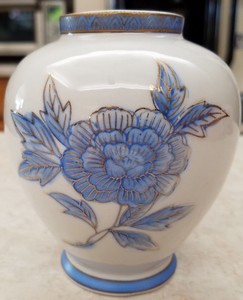Vintage Sato Gordon Japan Blue Ginger Jar Florals Gold Trim