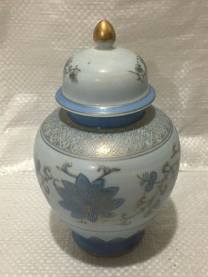 Japanese Ginger Jar With Lid Blue Floral Gold Trim Vintage Asian