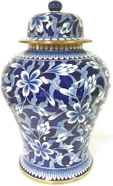 Blue White Gold Temple Jar Regal Design Tall Humble Home