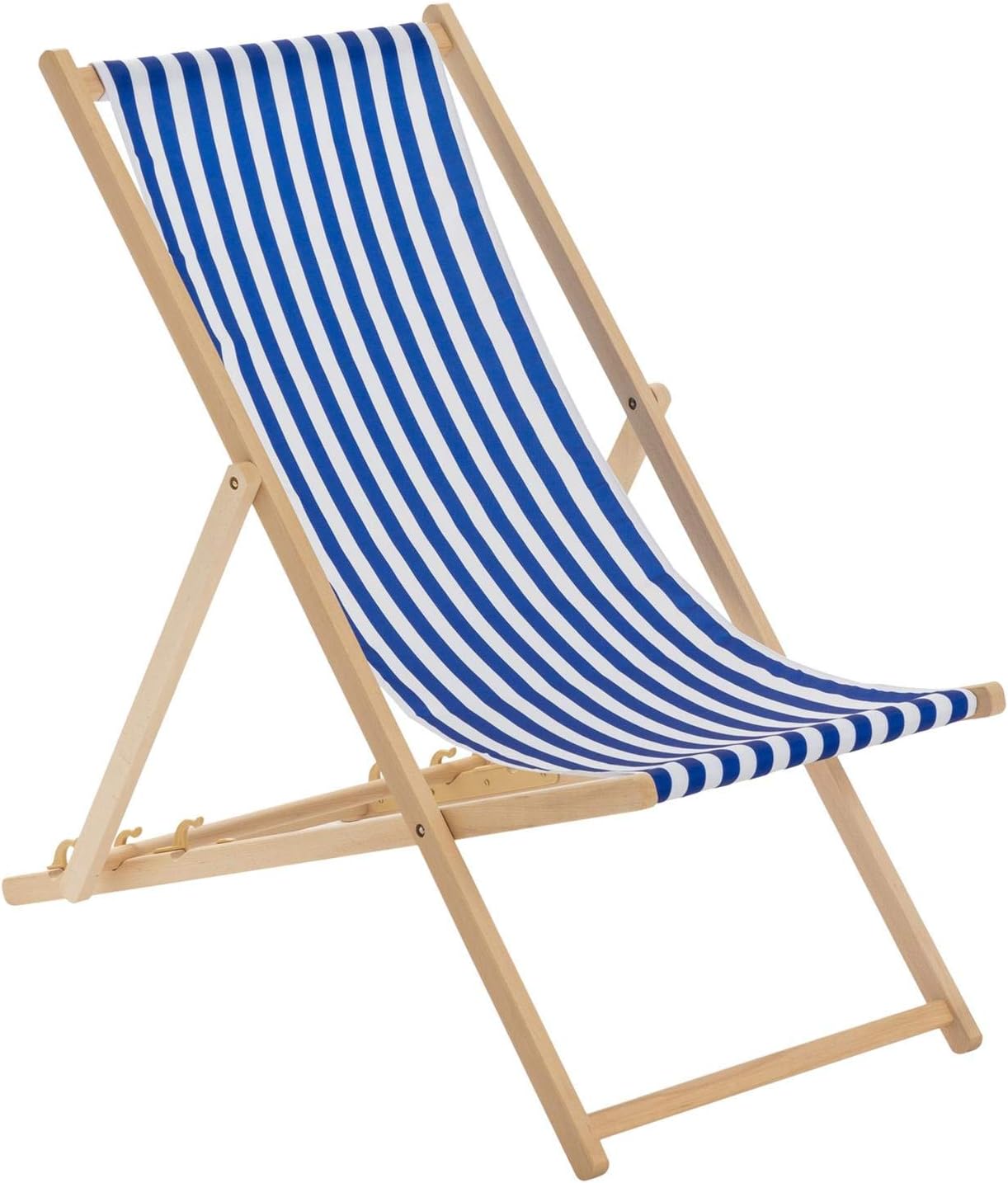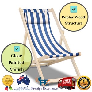 Foldable Seaside Beach Blue White Stripes Deck Chair Furniture