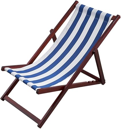 Folding Deck Chair Wooden Garden Retro Furniture Blue White