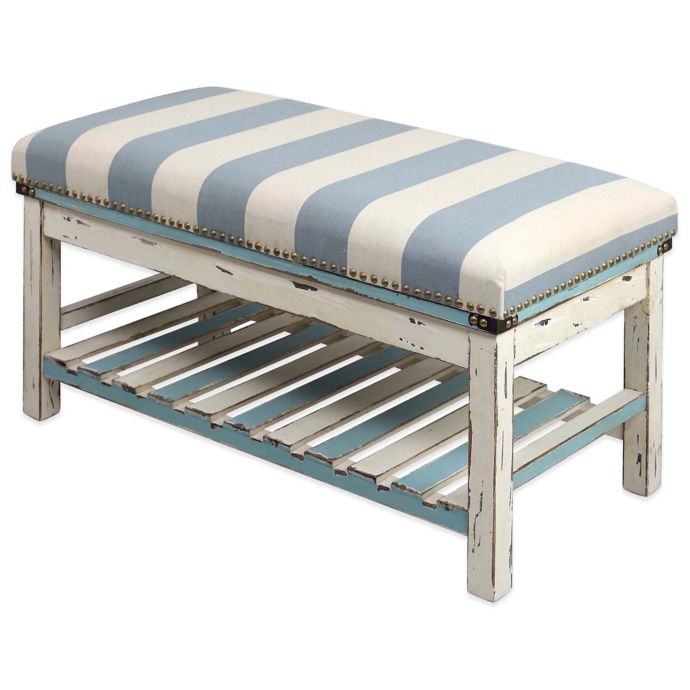 Weathered Blue And White Striped Bench Kirklands