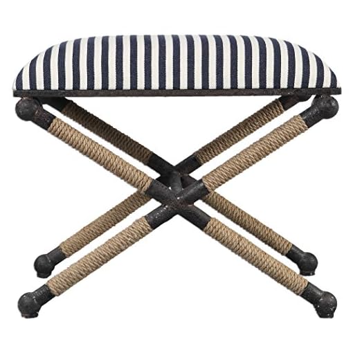 Cayden Bench In Blue And White Striped Fabric