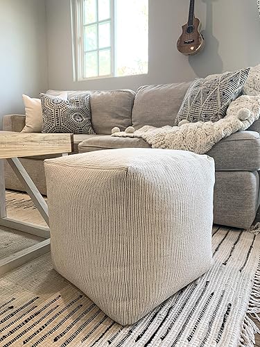 Textured Gray White Stripe Pouf