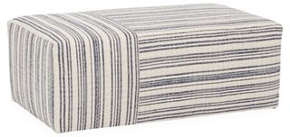 Biscayne Square Blue Striped Cotton Ottoman