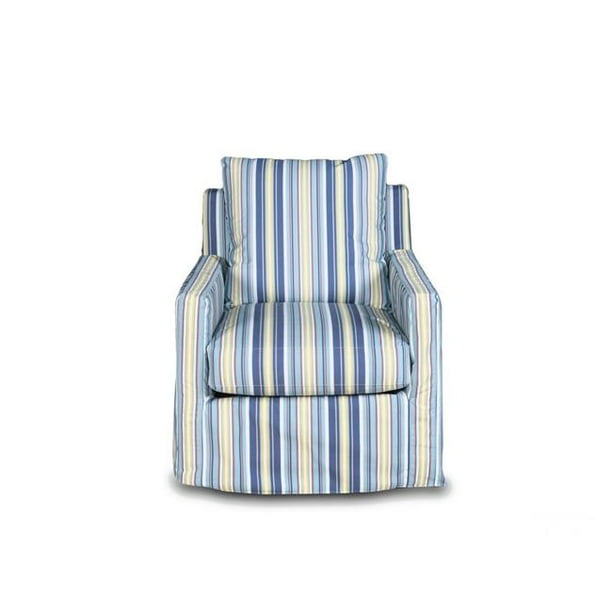 Horizon Blue Striped Slipcovered Box Cushion Swivel Rocking Chair
