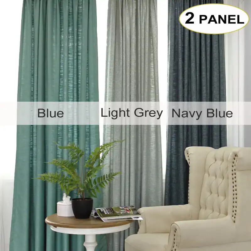 Quality Burlap Dark Blue Simple Country Style Curtains