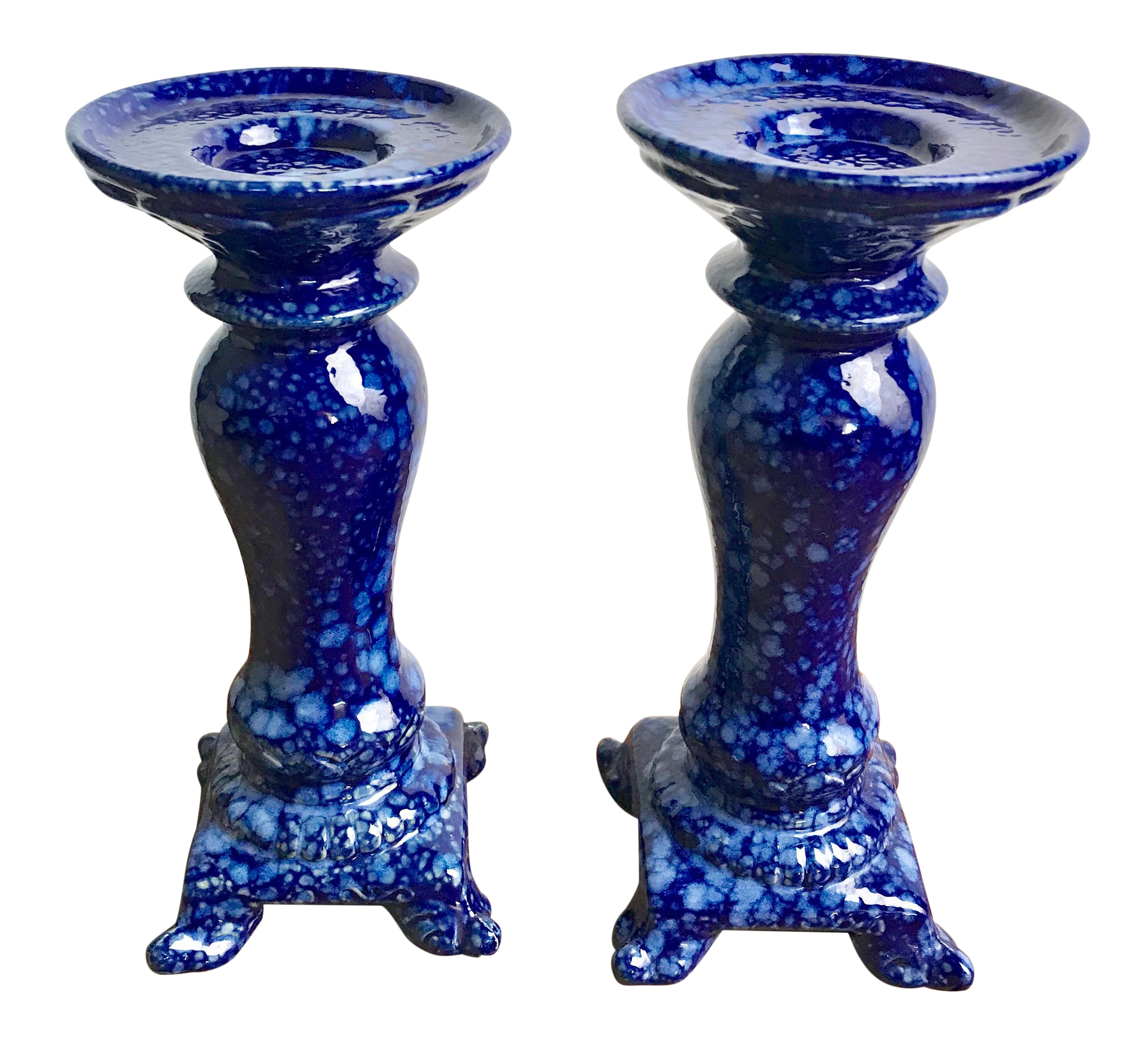 Vintage Cobalt Blue Speckled Ceramic Candle Holders A Pair Chairish