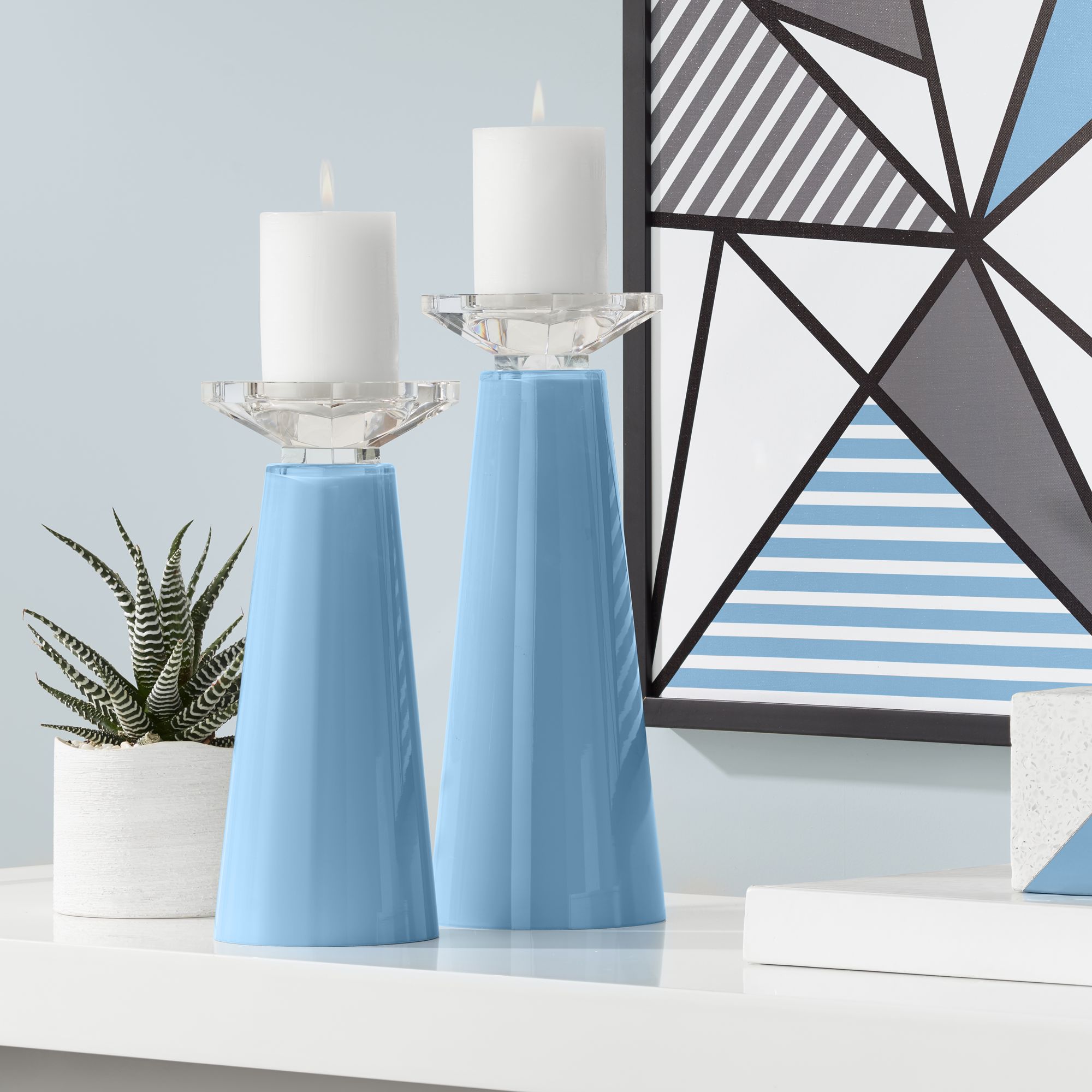 Richland Pillar Light Blue Candles Amp Eastland Cylinder Holders