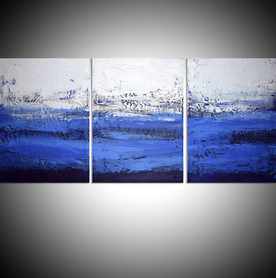 Large 3 Panel Abstract Triptych Canvas Wall Art Abstract Blue