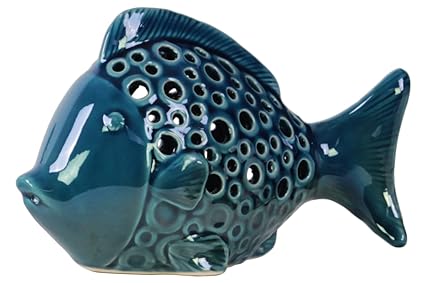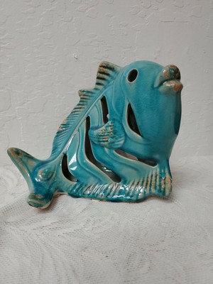 Turquiose Blue Ceramic Fish Tabletop Beach Tropical Ocean Sea