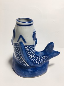Blue And Orange Ceramic Fish Design Vase