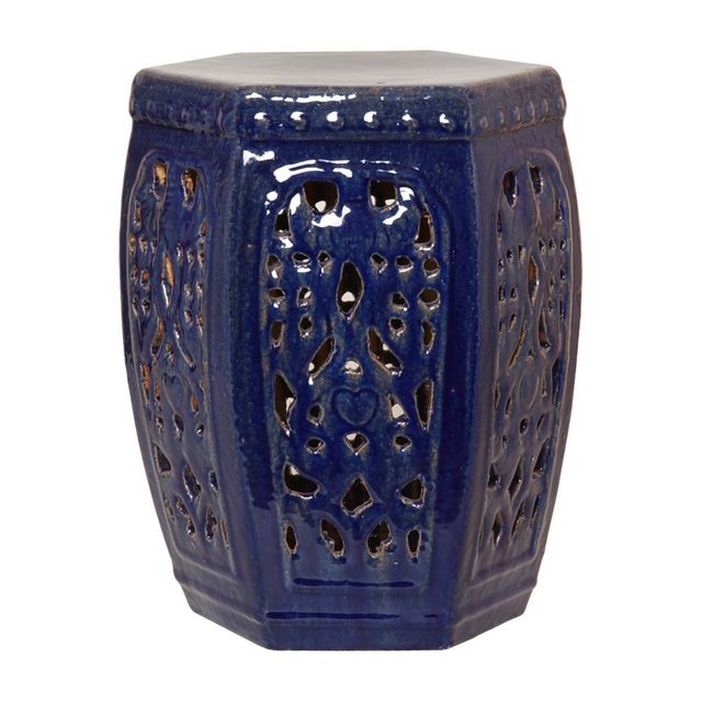 Indigo Cutwork Ceramic Garden Stool Zuri Furniture