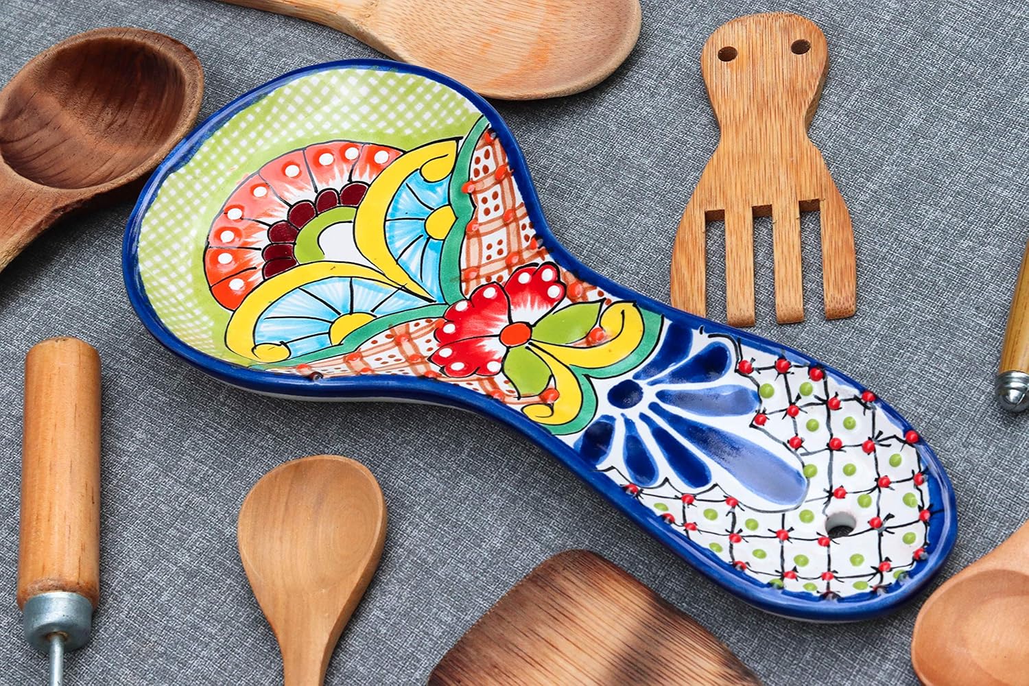 Unique Hand Painted Large Talavera Ceramic Spoon Rest For Mexican