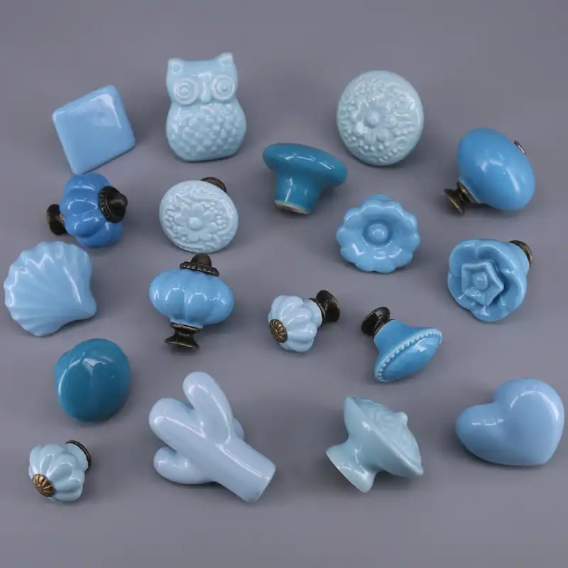 1x Light Blue Ceramic Owl Cactus Knob Cabinet Pull Kitchen