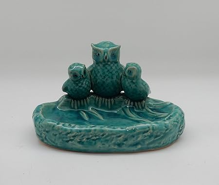 Green Pastures Wholesale 8 Blue Ceramic Owl Bird Bath Multicolor