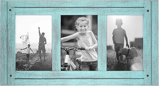 2 4 Hole 5x7 Barn Window Collage Picture Frame Sky Blue