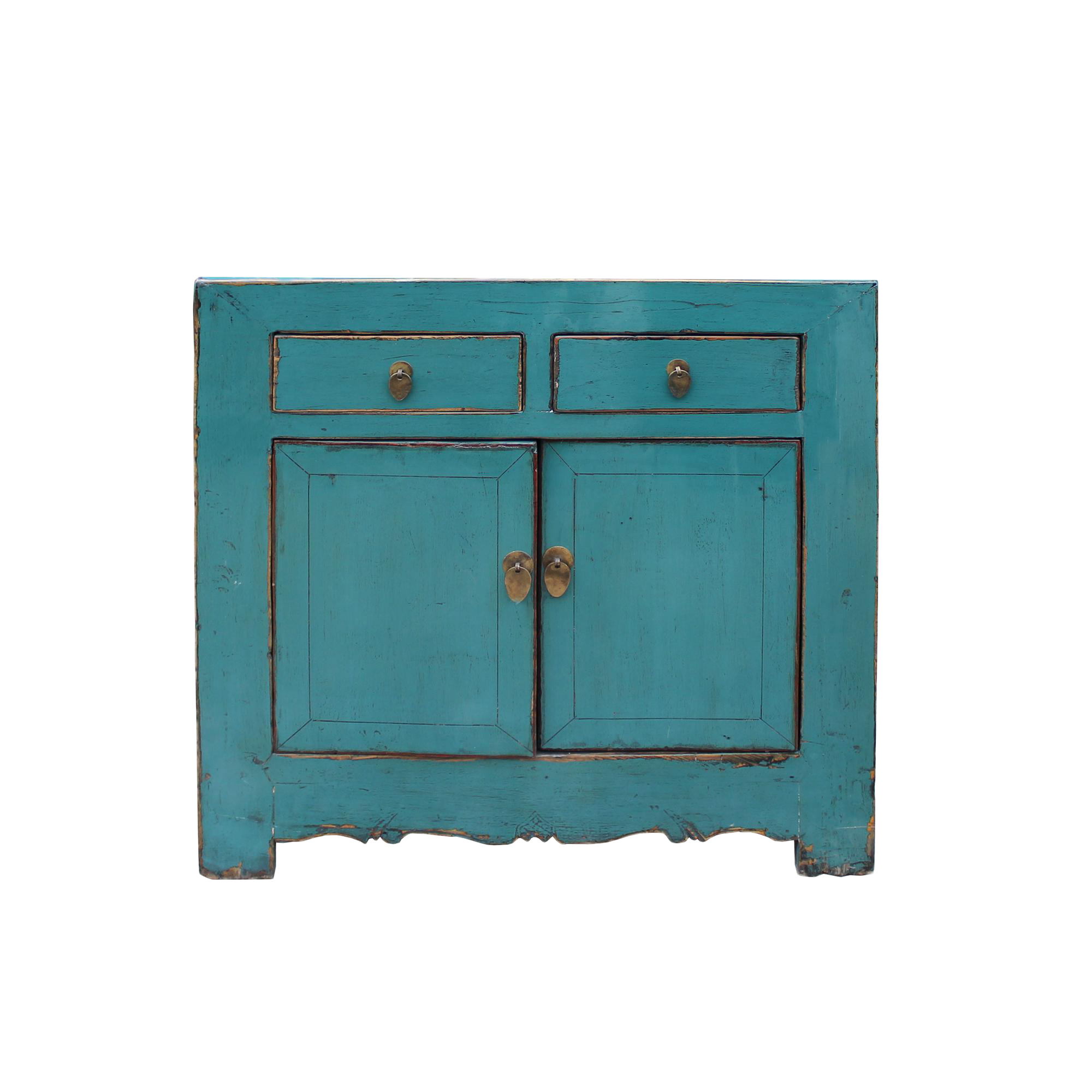 Chinese Distressed Rustic Aqua Blue Foyer Console Table Cabinet
