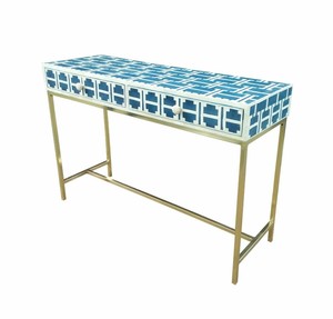 Handmade Bone Inlay Blue Geometric Console Table Desk Ebay